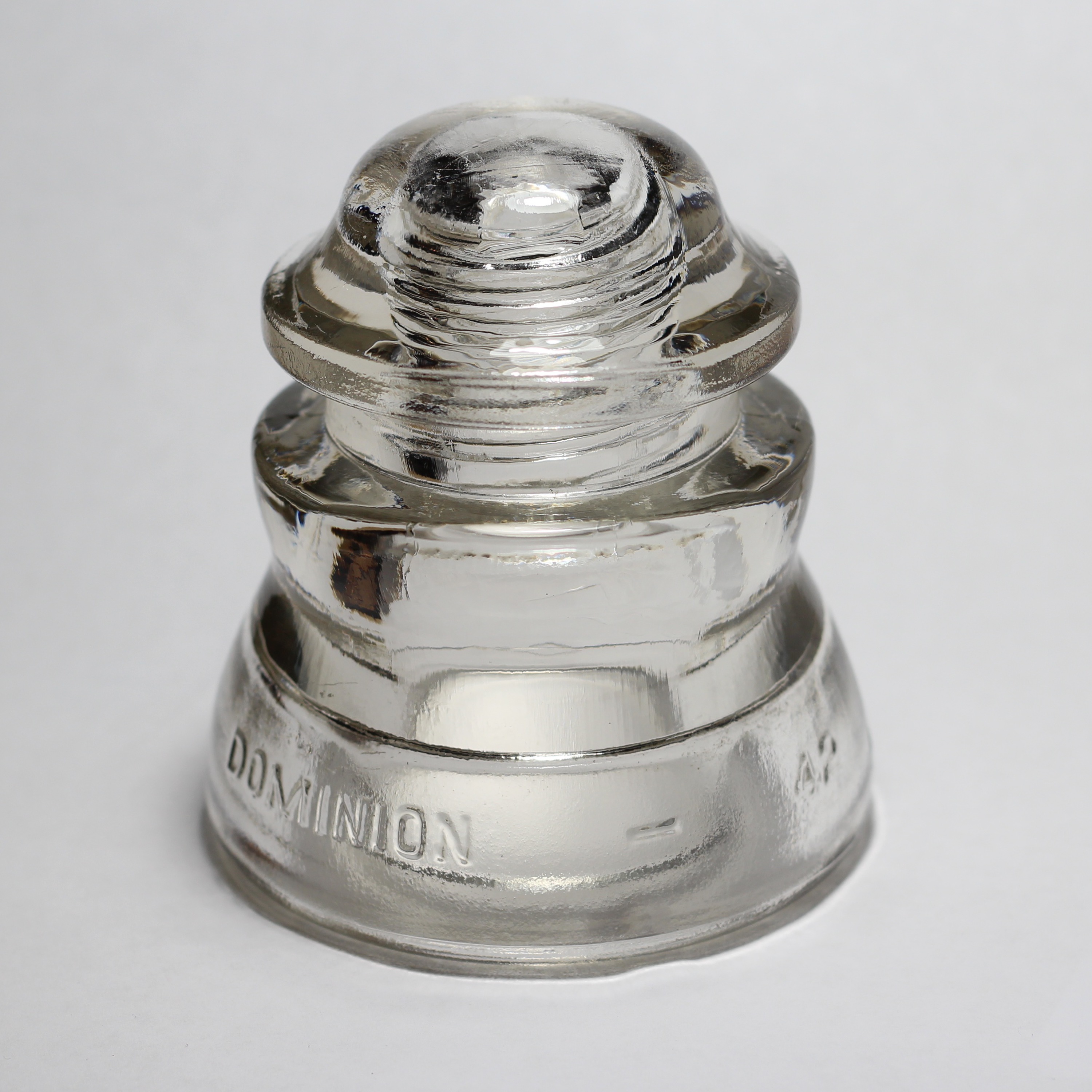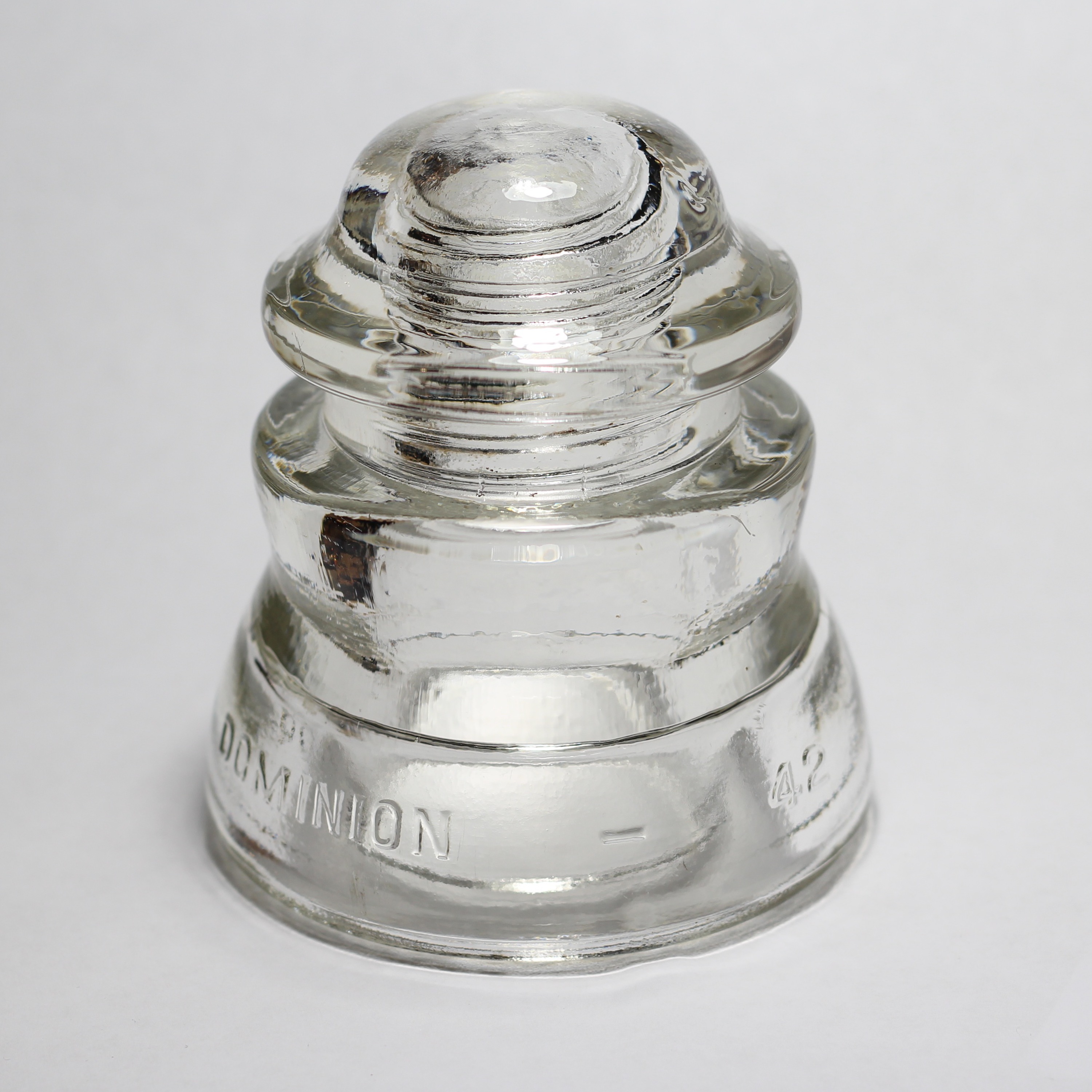 There's a large number of Dominion-42's (CD-155) in my collection, there were still hundreds of telephone poles full of them along Highway 6 in the West Kootenays when I first moved there in 2000, so they were quite common at the time. Most of these insulators were found in the West Kootenays, but some came from the East Kootenays and Central Okanagan. Each image is clickable for a stupidly-high-resolution version of the same.