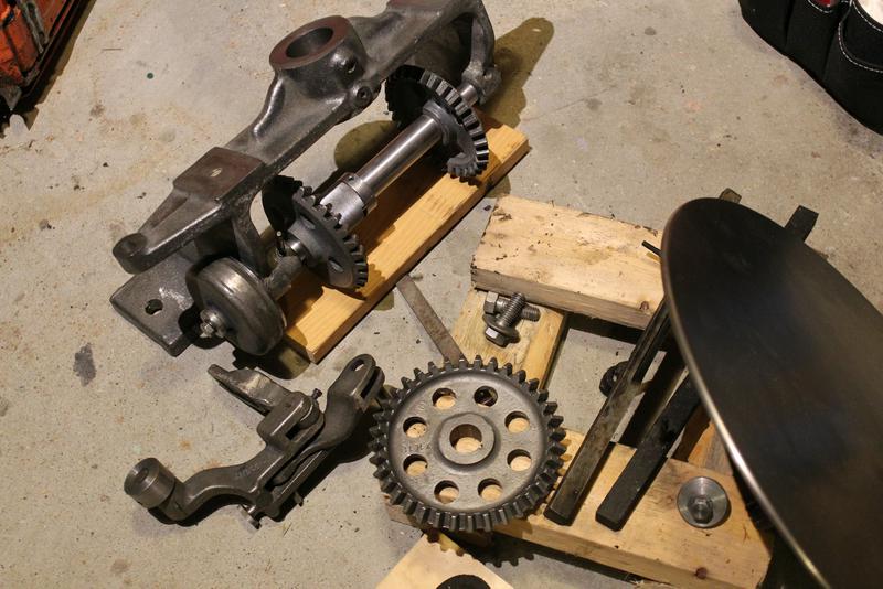 I've since stripped the ink fountain, ink disk, and ink disk rotation mechanism down to bare cast iron. I use electrolysis to accomplish most of the work, which in addition to removing rust also strips paint and de-greases at the same time. I'm slowly amassing a pile of cleaned parts, ready for paint: