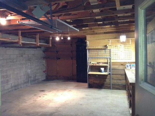 A must have for me when shopping for a new house was the garage, or a workshop. I needed a place to keep my things, because they're not really small. The place we ended up buying has a 17' x 24' workshop set into the hillside beside the house. The top of the back wall of the workshop is at ground level, the bottom of the front wall is also at ground level. My workshop is concrete on 4 of the 6 sides.