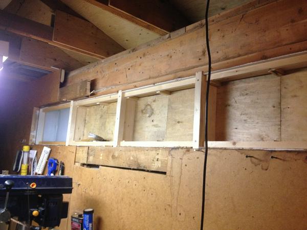 The glass blocks that I was planning on installing were a bit too big to fit in the existing window openings, so they needed to be replaced. Given that the window frame was also holding up the roof, I had to take some precautions when replacing the window frames.